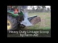 The linkage scoop can be operated backwards and has a lifting height of 600mm. The scoop is ideal for moving materials about and has a range of top link mounting points to vary the angle of attack on the bucket. The trip can be operated from the tractor seat. Suggested tractor horsepower is 18-70HP.